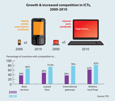 En la tierra viven 6.896 millones de personas. De ellas, más de 2.000 millones son internautas, según un informe de la ONU, es decir, un 29% de la población mundial o uno de cada tres humanos. Un gran dato que se empequeñece si se compara con la penetración de la telefonía móvil, que cubre a 7 de cada diez personas."A principios de 2.000 había solo 500 millones de suscripciones móviles en todo el mundo y 250 millones de usuarios de Internet", explica el secretario general de la ITU, la agencia de la ONU encargada de las telecomunicaciones, Hamadoun Toure. En una década, el dato se ha multiplicado por diez, llegando a los 5.000 millones en el caso de la telefonía móvil (en el que hay que tener en cuenta que algunos usuarios tienen varias terminales), y se ha cuadruplicado para los internautas, la mayoría de los cuales (un 57%) vive en países en desarrollo, según la ONU.