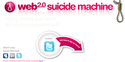 Un suicidio Web 2.0! Esta máquina permite eliminar toda su energía de succión perfiles de redes sociales, matar a sus amigos virtuales falsos, y acabar por completo con tu alter ego Web 2.0.